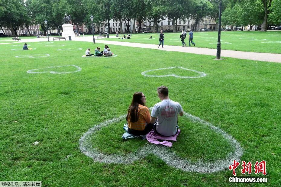 英国启动第4次解封,表示各行各业都开始复苏,人们的生活也逐渐恢复到正常。对于不少中餐从业者来说,他们早就盼着这一天的到来,并且都已准备好。 资料图:7月8日,英国布里斯托尔,艺术家在皇后广场的草地上画出心形图案,敦促人们保持社交距离。(中新网)