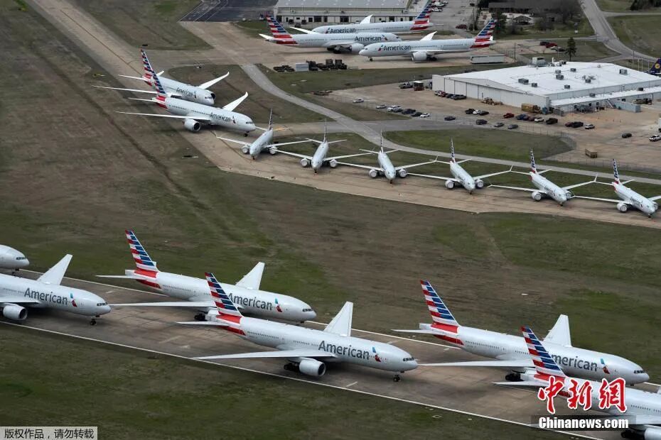 资料图:美国俄克拉荷马州塔尔萨的塔尔萨国际机场的跑道上停满了飞机。