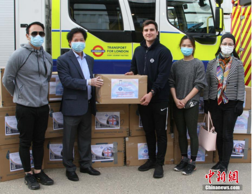 资料图:英国华人社团向伦敦交通局捐赠防护口罩。中新社记者 张平 摄 谨慎重启 难中求变