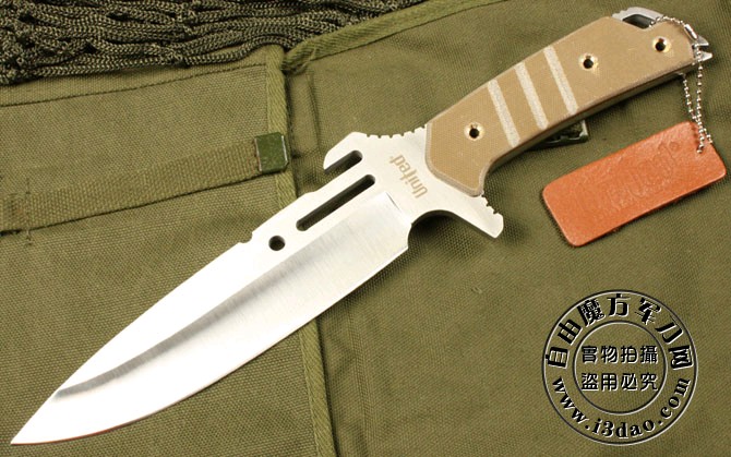其中一款鲨鱼刀由著名的联合刀具公司生产的鲨鱼刀。这两款刀均采用优质的高碳钢制造,刃口锋利。每把刀均配皮革刀套。 精美的联合刀具,几乎是每个爱刀者的必藏之品,但都由于其昂贵的价格而连连叹惜。 大名鼎鼎的联合刀具,以其精美,典雅,大胆而创新的风格完全地体现在了鹰刀的流线造型中!其观赏性已大大超越了其实用性!如鹰的凛烈,风般流畅,注定它将流传百世! 金属手柄!刀身以其刃形的不同,或印,或镶着其本款刀的喻意,此刀十分有气势,刀刃冷光闪闪。