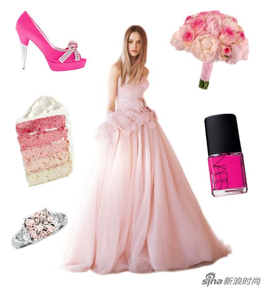 粉色意味着准新娘以自己散发的女性气质为傲,喜欢被呵护的感觉。另外,粉色是一种幸福的色彩,洋红色会为婚礼带来温馨、热情的氛围,而中性粉和淡粉色代表着复古和怀旧。