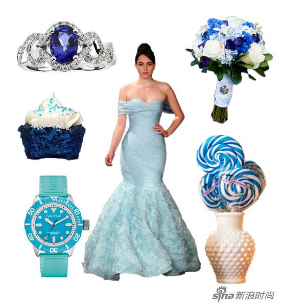 当下的眼光认为粉色是“小女孩”般的传统婚礼色,事实上,依据西方传统婚俗,百年前的淡蓝色才是最具女性色彩的婚礼用色。蓝色象征着纯洁无瑕以及精致细腻,比粉色更脱俗。蓝色系的婚纱衬托新娘的高洁气质,比白色更令人难忘。