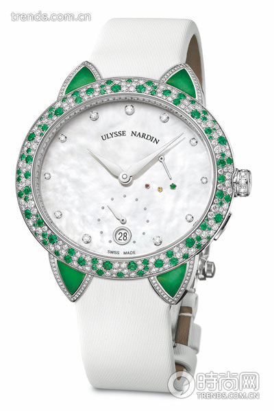 这款发布于2013 年的精美手表,背后是一个略带哀伤的美丽故事。十多年前,一位名叫蔡爱华 史耐德的女士对丈夫说,所有腕表在改变调整功能的时候都需要拔表冠,这一举动常常会刮花做好的指甲,而做一套漂亮的美甲需要花很长时间,希望想出什么办法来避免这种烦恼。他的丈夫彼时便是雅典表主席兼行政总裁罗夫 史耐德先生,经过这么多年,这枚特殊的腕表终于研发出来:表壳上4 点钟位置有一个按钮,可以用来改变表冠功能:位置1为机芯上链;位置2 是向前及向后调整日期;位置3用来设置时间。每个操作都是简单地向前或向后旋转表冠,不需要将表冠拉出,现处于何种功能在表盘上也有单独的显示。而如今罗夫 史耐德先生也已经去世,现任雅典表主席的蔡爱华. 史耐德谈起这支表依然会泪盈于睫。这支表传递着一种信念:爱一个人,便是在细节上给予她最大的呵护。