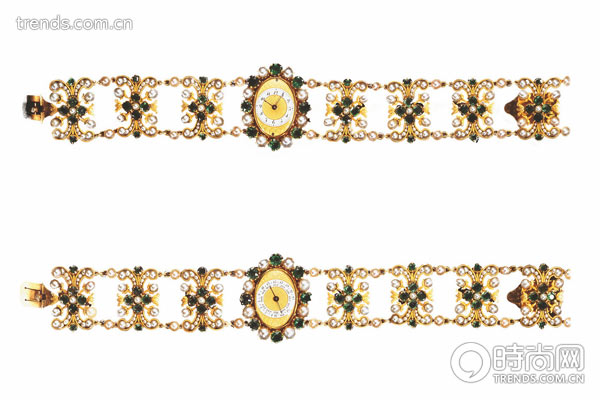 紧接而来的一枚著名腕表来自于古老的品牌Chaumet,1811年,品牌创始人Fran.ois-Regnault Nitot 受意大利总督尤金博阿尔内王子(Eugene de Beauharnais) 所托,制作了一对手镯腕表送给妻子奥古丝塔 德 巴维尔公主(Princess Augusta of Bavaria) 作礼物。这一对腕表一支显示时间,另一支则显示日期。而1821 年,那不勒斯皇后向宝玑定制的椭圆形手镯腕表也诞生了。