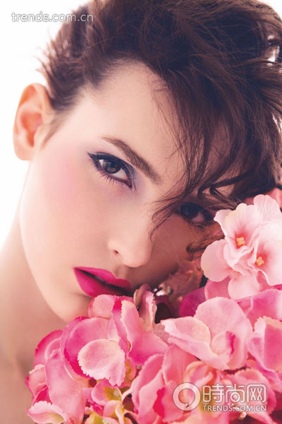 凸显双眼贝壳色的光泽,与整体妆容和谐统一。只要用指腹蘸取眼影点压在眼睑即可,省去浓黑的眼线,用根根分明的立体睫毛呈现清新的风貌。