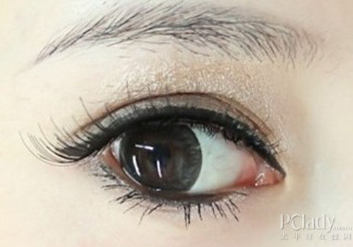 下眼线也要画到位,但下眼线只需画中间部分,效果如图。  睫毛部分