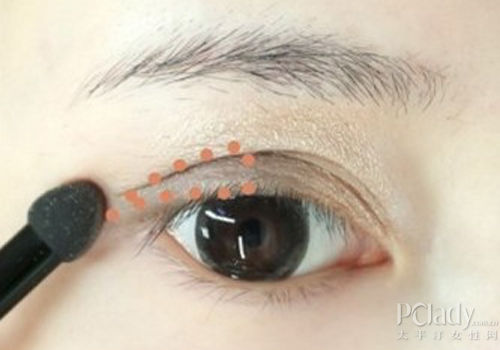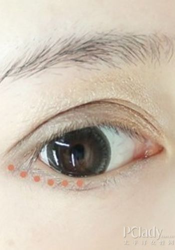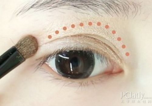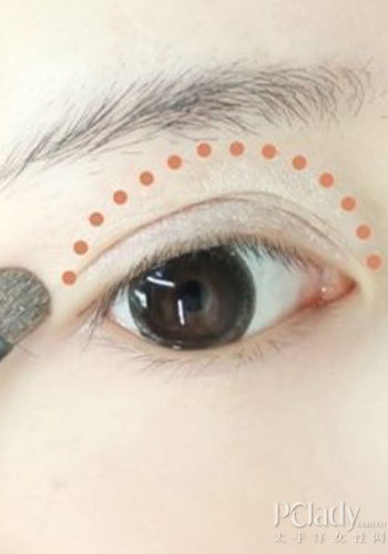 将白色眼影刷在双眼皮部分,从而达到提亮眼妆的效果。  裸色眼影