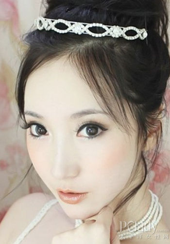 画好眼线之后,粘贴好仿真假睫毛,下睫毛部分直接用睫毛膏涂刷。  淡橘色腮红 刷上淡橘色腮红,和粉橘色唇妆,整个妆容就完成了。亮的美唇,所有的一切缔造出新娘静谧圣洁的美感,你也想要轻松做最动人的新娘子。