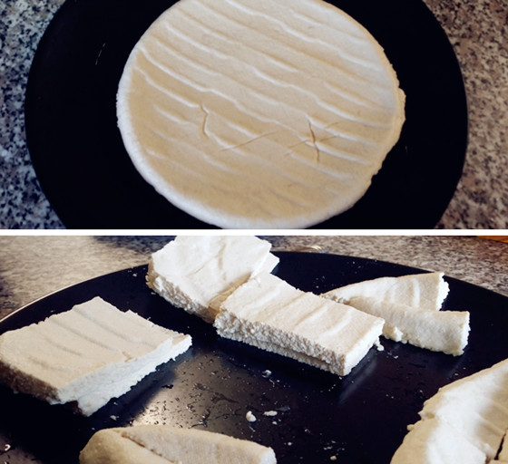 7. 接下来就要耐心等待了,等自然冷却下来,豆腐就会成型,如果喜欢嫩一点的现在就可以拆封了,本人喜欢吃老豆腐,于是等了两个半小时左右。这就成功啦!!!(据说用这种酸卤方法做出来的豆腐口感都偏老,要做嫩豆腐还得用石膏或者国内卖的内酯,没尝试过,所以不知道真相如何,还有人用吉利丁代替石膏的,据说做出来的直接是嫩豆腐布丁……)