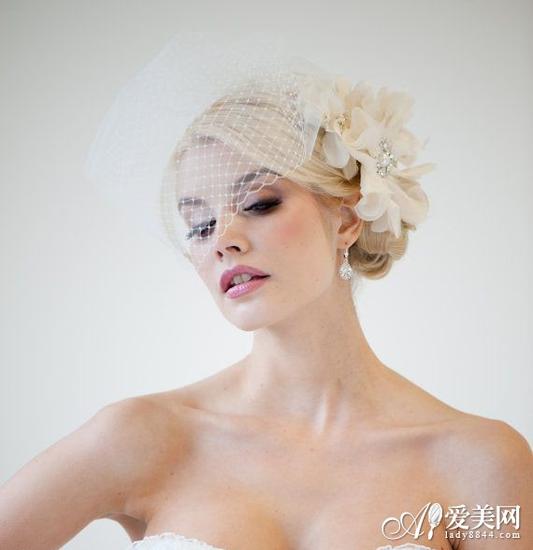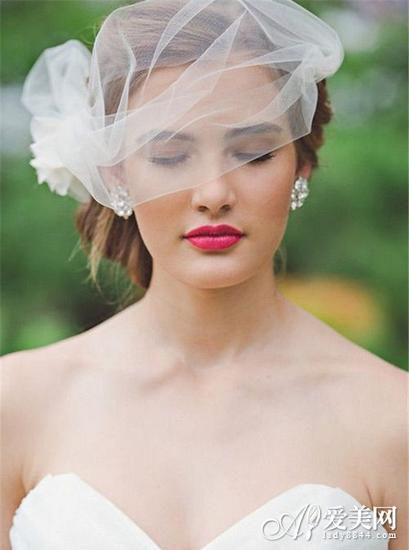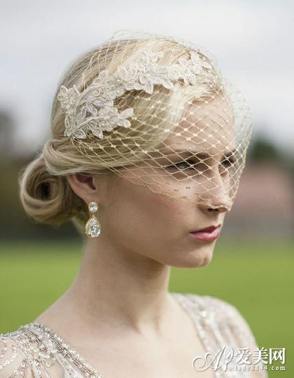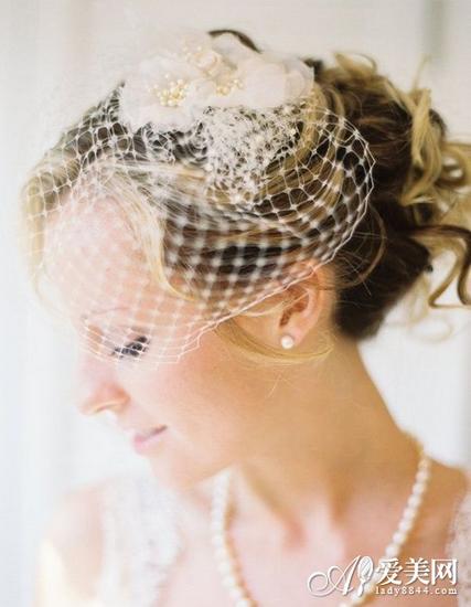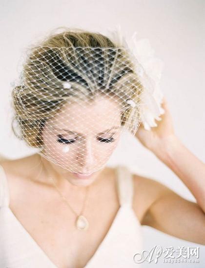 网格状短款头纱 有些新娘觉得穿上了华丽的婚纱礼服就一定得配长款面纱,其实这样反而会顾此失彼。不如选择一款素净简洁的面纱吧,再插上一朵刚采摘下来的散发着迷人暗香的鲜花,可能会有意外之喜哦!  鸟笼网格短款头纱