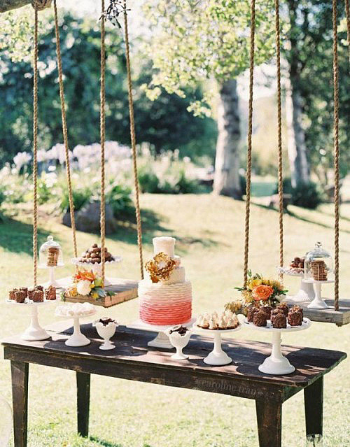 除了花卉,也可以选择其他的,彩色的丝带、彩色的水果,甚至是找出一些闲置的旧物进行改装、设计,最后可能会得到不一样的效果。简单的DIY是一种很节省预算的方式,而且亲手制作会具有特别的意义,婚礼结束后还可以用来收藏。
