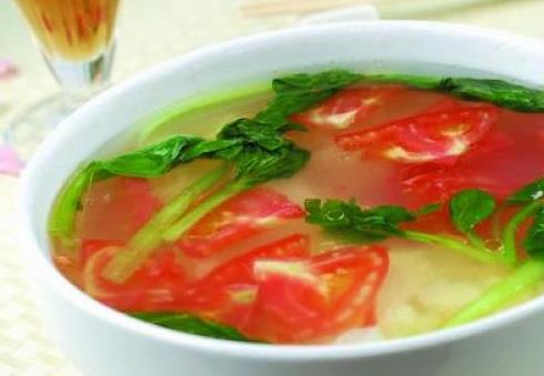 材料:番茄半斤、芹菜半斤、瘦猪肉四两、生姜两片。