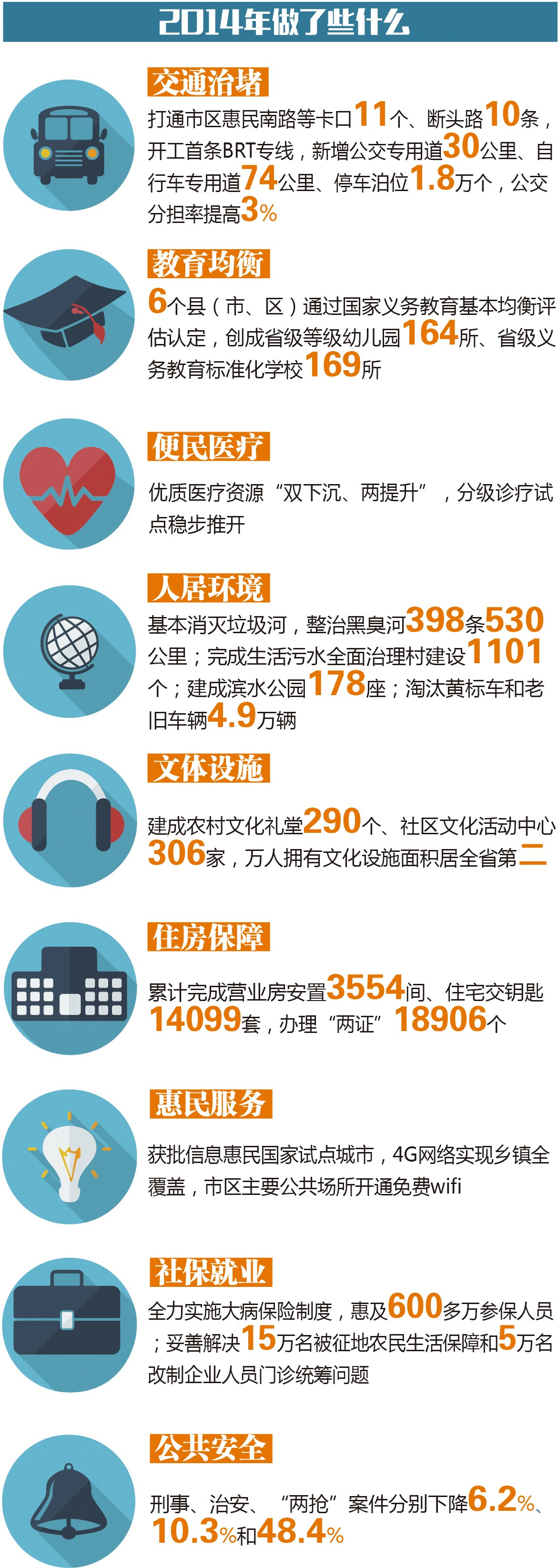 在市第十二届人大五次会议上,市长陈金彪所作的《政府工作报告》中描绘了2015年里温州的蓝图,并提出了8项今年的重点工作任务。