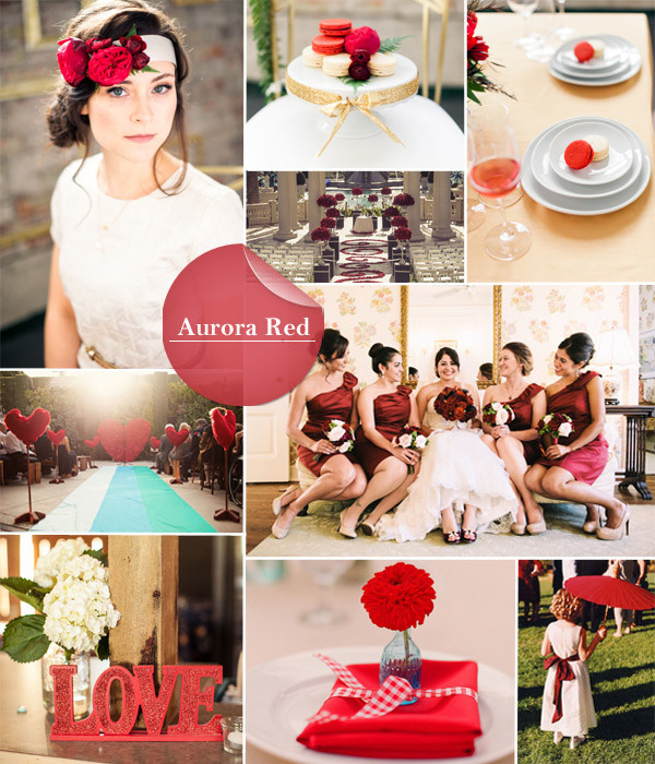 夏末初秋的华丽颜色,温暖耀眼的极光红在本季蔓延开来,在婚礼上这是一个喜庆而引人注目的颜色,也会让整场婚礼看起来更加奢华名贵。