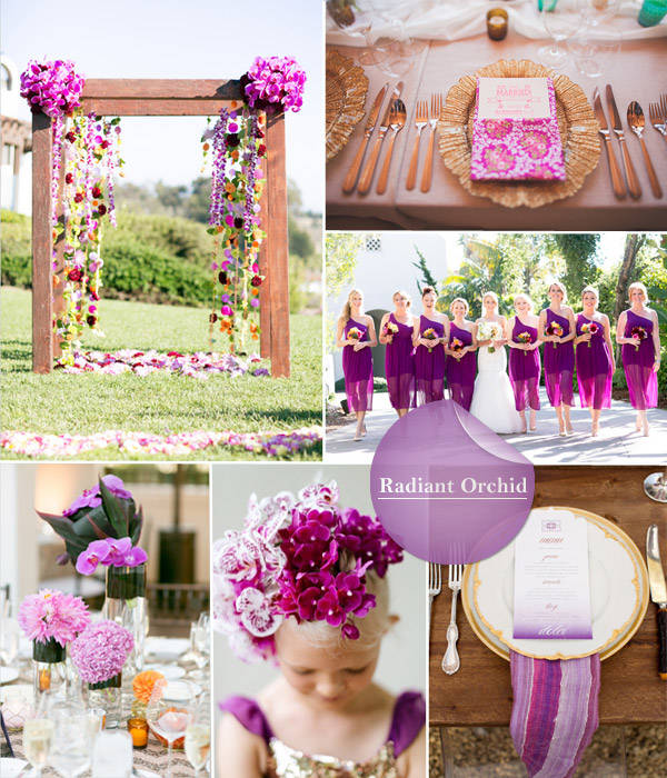2014年最受关注的流行色无疑是兰花紫,从粉紫色的兰花中汲取的兰花紫色,PANTONE对兰花紫的定义是迷人的、神奇的和有些神秘。 在婚礼上把兰花紫与雾紫色搭配,将其与同色系不同深浅的色彩搭配,能收获意想不到的效果,同时也为婚礼注入更多的迷人元素。
