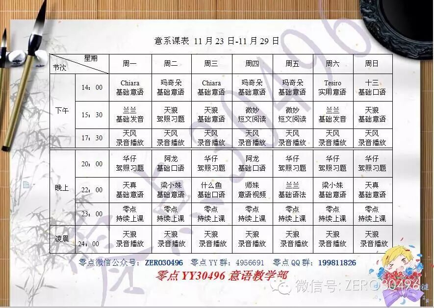 *以上课程都将在YY语音30496频道进行,且都为意大利时间,中国的同学请加上7个小时时差【单击点击图片放大】