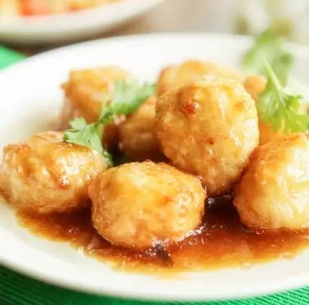 7 油锅烧热,用手把面糊挤成小丸子放入锅内。