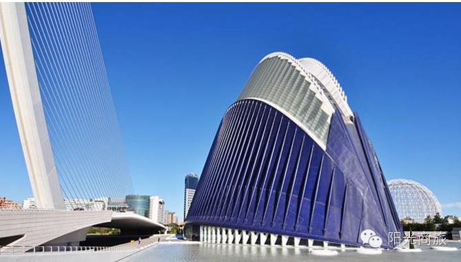 圣地亚哥·卡拉特拉瓦Santiago Calatrava(西班牙)是世界上最著名的创新建筑师之一,也是备受争议的建筑师。Santiago Calatrava以桥梁结构设计与艺术建筑闻名于世,他设计了威尼斯、都柏林、曼彻斯特以及巴塞罗那的桥梁,也设计了里昂、里斯本、苏黎世的火车站。最近的作品就是著名的2004年雅典奥运会主场馆。巴伦西亚的“艺术与科学城”是由三个部分组成的,分别是:一个天文馆、一个科学馆(菲利佩王子艺术科学宫)、一个歌剧院(索菲娅王后大剧院)。