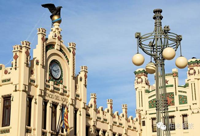 坐落在市中心Xátiva街上的火车北站,是二十世纪初的产物。外观对称,内外部的墙面均由漂亮的彩色瓷砖贴成。砖墙上有马赛克拼出的“Bon Voyage(旅途愉快)”的字样,祝福离开这里的旅客一路顺风,别具一格。夜晚的车站在灯光的映衬下,更显魅力。周边有一些古老的二手书店,常常能淘到不少有意思的小玩意。