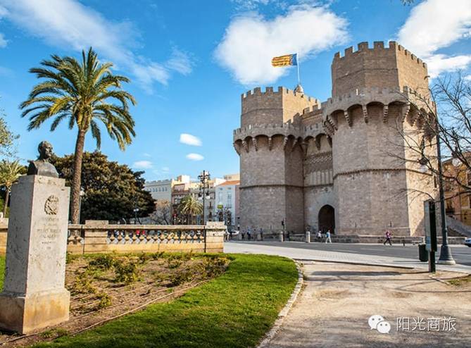 这是瓦伦西亚古城墙的一部分,作为古代的军事防卫设施,现在还可以看到塔楼上的弹孔。塞拉诺塔始建于1392年,是瓦伦西亚曾经最繁忙的城门之一,后有一段时间作为监狱,现在则是每年拉开法雅节序幕的地方,市长和“法雅小姐”会在这里讲话,宣布这一重大节日的开始。