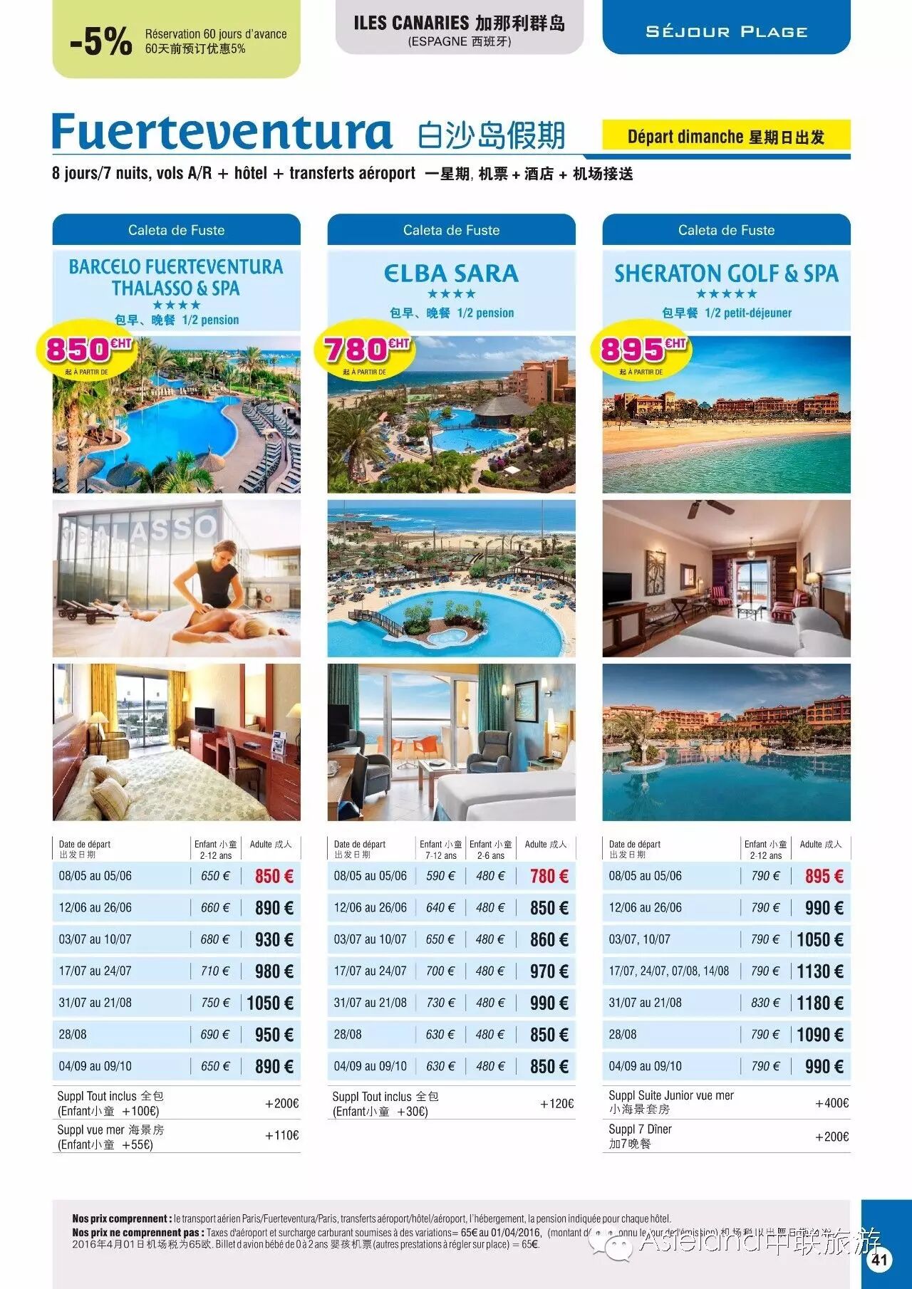 [旅游包车/地接] 中联旅游2016夏季超值旅行团-Fuerteventura西班牙白沙岛假期