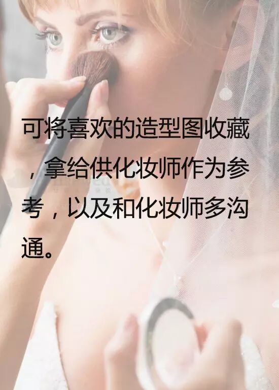 ③提前收集好您所喜欢的造型资料,化妆当天可以和化妆师多沟通,以达最佳效果;