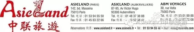 扫描下面的二维码关注我们的微信公众号Asieland中联旅游(微信号Asieland-France),获取更多旅游信息!