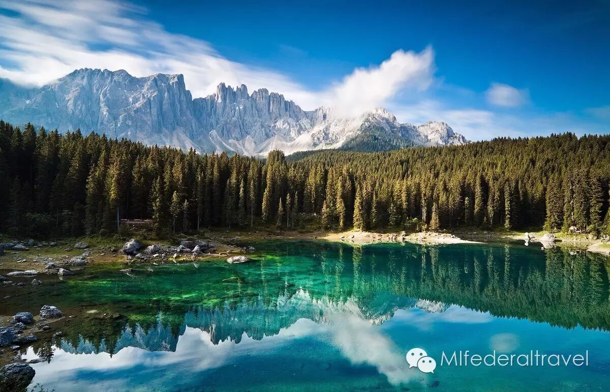 Carezza湖位于Carezza地区的微型湖泊,风景秀丽,犹如少女的清澈瞳孔。也叫Carezza湖,意大利语Lago di Carezza。
