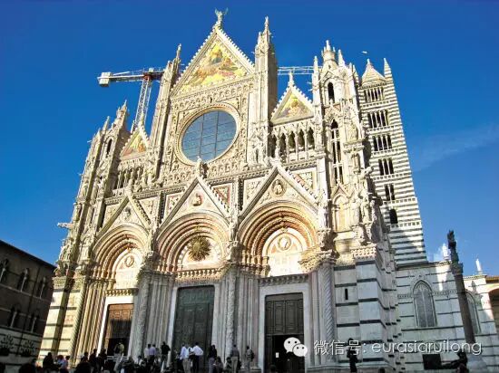锡耶纳大教堂 锡耶纳大教堂是意大利最大的教堂之一,有着典型哥特式的建筑风格,内部地面由黑白红花纹大理石拼接成了圣经的故事。