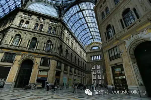 翁贝托一世拱廊街 建于1887–1891年,得名于翁贝托一世,既是一个购物中心,也是那不勒斯人社会生活的中心。
