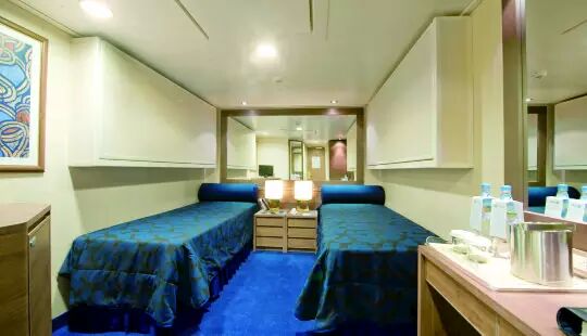 自动恒温空调,两张单人床(可根据需要合并为一张双人床),宽敞的衣柜,卫生间配有淋浴,互动电视,电话,无线网络接入服务(需要付费),迷你吧,沙发