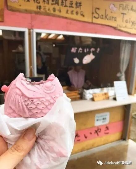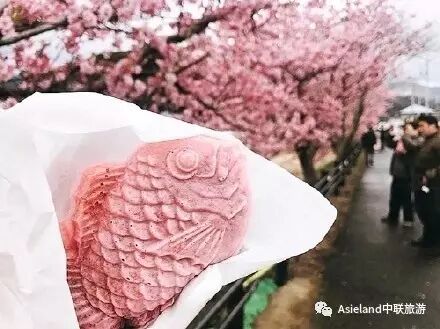 随着日本樱花的开放,粉色的鲷鱼烧也上线了!粉红色表皮的鲷鱼烧内夹着热腾腾又甜蜜的红豆馅。在这个乍暖还寒的时节,一边走在铺满樱花的大道上,一边吃粉色的鲷鱼烧,也太幸福了吧!