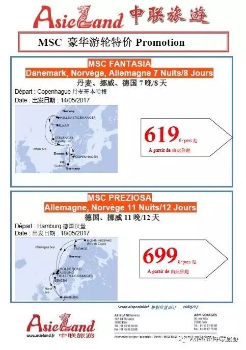 [旅游包车/地接] 【最后促销价】MSC豪华邮轮北欧名都之旅619欧起!