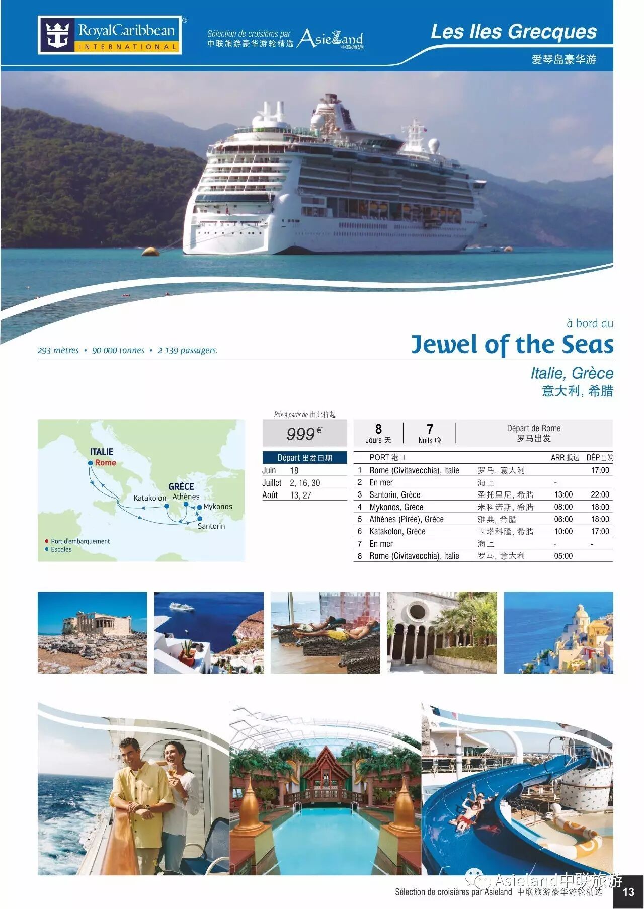 中联旅游豪华游轮精选 Sélection de croisières par Asieland 海洋珠宝号游轮 意大利、希腊8天7晚游999欧元起!