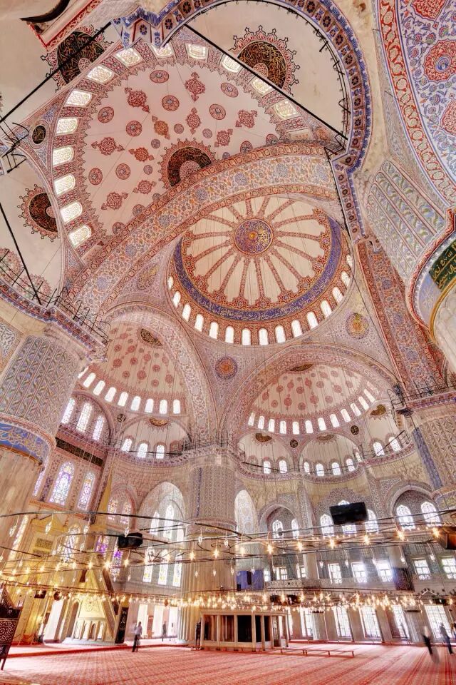 参观 AYASOFYA圣索菲亚教堂,它是拜占庭建筑艺术最出色的代表作,以其举世无双的圆顶著称,气势宏大,在罗马圣彼得大教堂建成前,它曾是世界最大的教堂。