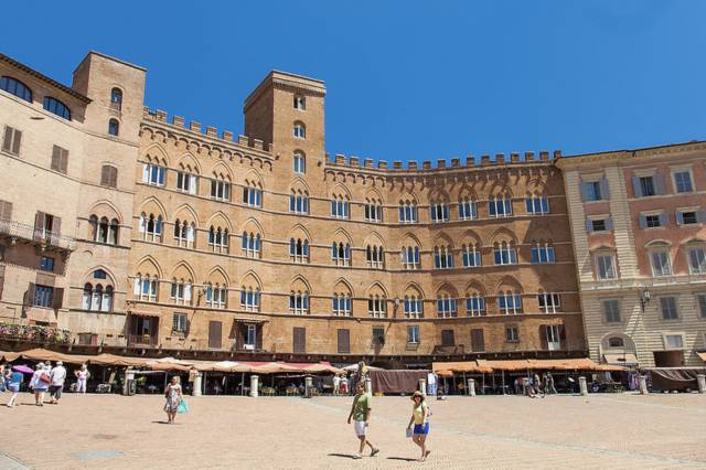 西恩納是在中世紀時期與佛羅倫斯分庭抗禮的繁華城邦之一,可惜14世紀時期遭受黑死病的摧殘,山城的發展被硬生生地截停下來。