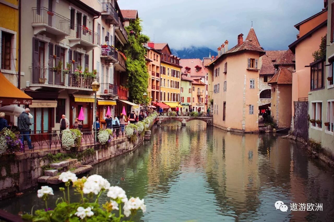 安纳西位于阿尔卑斯山山脚,比邻瑞士日内瓦,它曾经是瑞士的属地,所以小镇的瑞士气息要远比法国浓。安纳西湖湖水来自阿尔卑斯山上的高山雪水,被称为欧洲最纯净的湖。湖水流到安纳西镇后汇成小河贯穿整个小镇的老城区,小河两边是年史悠久的老建筑,现在大部分已经作为餐馆和咖啡馆。小河上有很多布满鲜花的小桥,让你可以轻松的穿梭于河道两边。 在阳光明媚的一个下午,在河边一家古老而有情调的咖啡馆,喝着咖啡,读着手中的书,偶尔看一下河中的白天鹅,你的心变得很轻很轻......