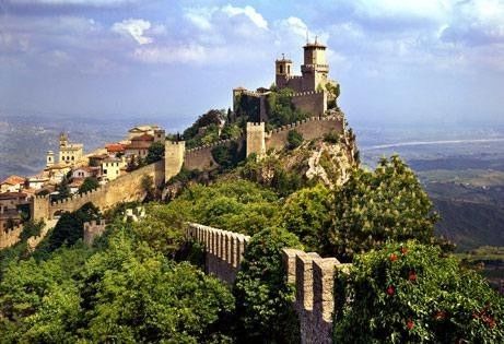 圣马力诺是欧洲的第三小国,仅次于梵蒂冈城和摩纳哥,其人口只有3万人。坐落在山顶上的圣马力诺,不仅让你伸手就可以够到蓝天白云,还可以让你体会到一览众山小的气魄。整个国家建在MONTE TITANO蒂塔诺山上,最高海拔750米,为了保护国家安全,在圣马力诺还有三个比较著名的军事要塞。城中还有很多观景台供游客们休息,站在山上,俯瞰MARE AD RIATICO亚得里亚海和RIMINI海岸线。