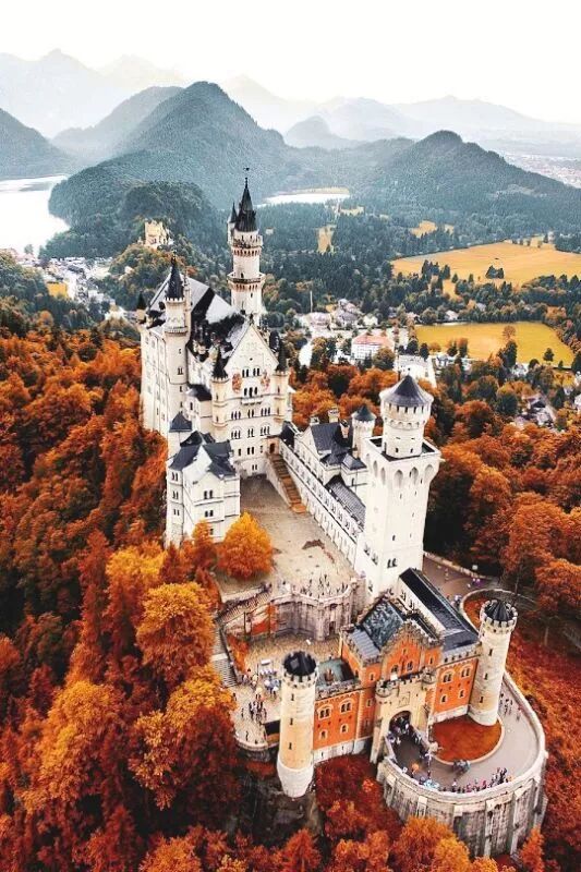 这座城堡建于1869年,是巴伐利亚国王路德维希二世的行宫之一,也是他为自己心爱的茜茜公主而设计建筑的城堡。