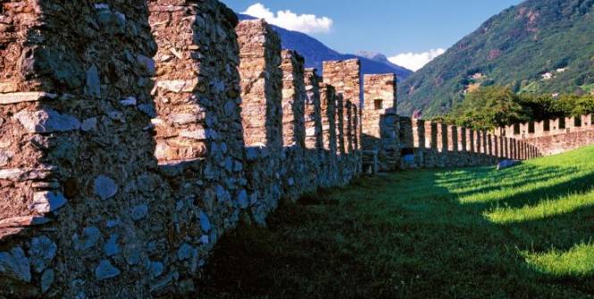 贝林佐纳的城堡防御工事是阿尔卑斯地区中世纪防御建筑最重要的例子之一,2000年被列为世界文化遗产。从贝林佐纳城中最古老最坚固的城堡——格朗德大城堡(CASTEL GRANDE)往外眺望,古城区以及附近的美丽景色尽收眼底。