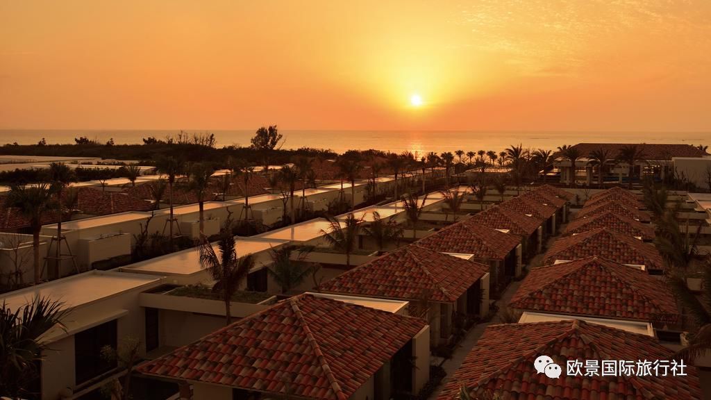 酒店位于残波峡附近。虽是今年三月才刚刚落成的别墅酒店,却已经被众多杂志提名为冲绳必住的酒店。参照了琉球传统的建筑风格,48 栋独立的小别墅屋顶上的红瓦鳞次栉比,像一个小小的村落。