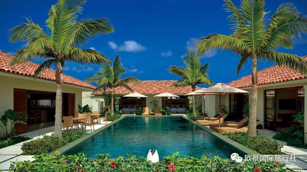 每栋别墅都带有厨房和泳池,推门步行几分钟就是私人海滩。