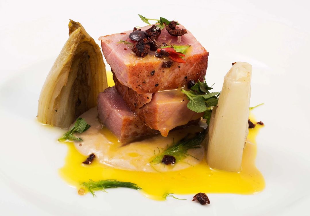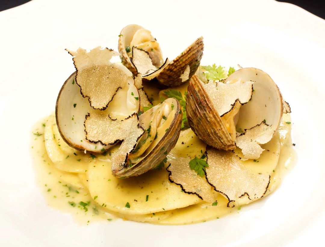 还有更加秀色可餐的菜品可选, 既拥有令人过目不忘的外表, 又似乎糅合着超越你想象力之外的每一种可能。 烤章鱼配碎面包,熏西葫芦 scottadito di caramero 欧洲鲈配松露 Spigola e tartufo 意式小麦面配蛤蜊与松露 corzetti di grano tenero tartufo