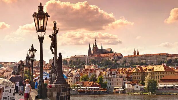 布拉格城堡曾经是捷克王室所在地,现在则是总统与国家机关所在地,这里也是眺望老城区绝好的观景台。这里保存着波希米亚王国的王冠。布拉格城堡是世界上最大的古城堡,长570米,平均宽约130米。城堡里最主要的三个景点分别是圣维特大教堂、黄金巷和旧皇宫。城堡中著名的圣维特大教堂,是整座城市最古老的部分,至今已有1000多年历史。圣维特大教堂是一座宏伟的灰黑色哥特式建筑,参观重点包括20世纪的彩色玻璃窗、圣约翰之墓和圣温塞斯拉斯礼拜堂。中期教堂的大型彩色玻璃是布拉格著名画家穆哈的作品。旧皇宫每天中午12点时会举行士兵换岗仪式,很有特色。