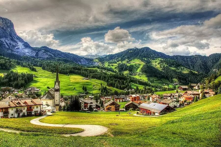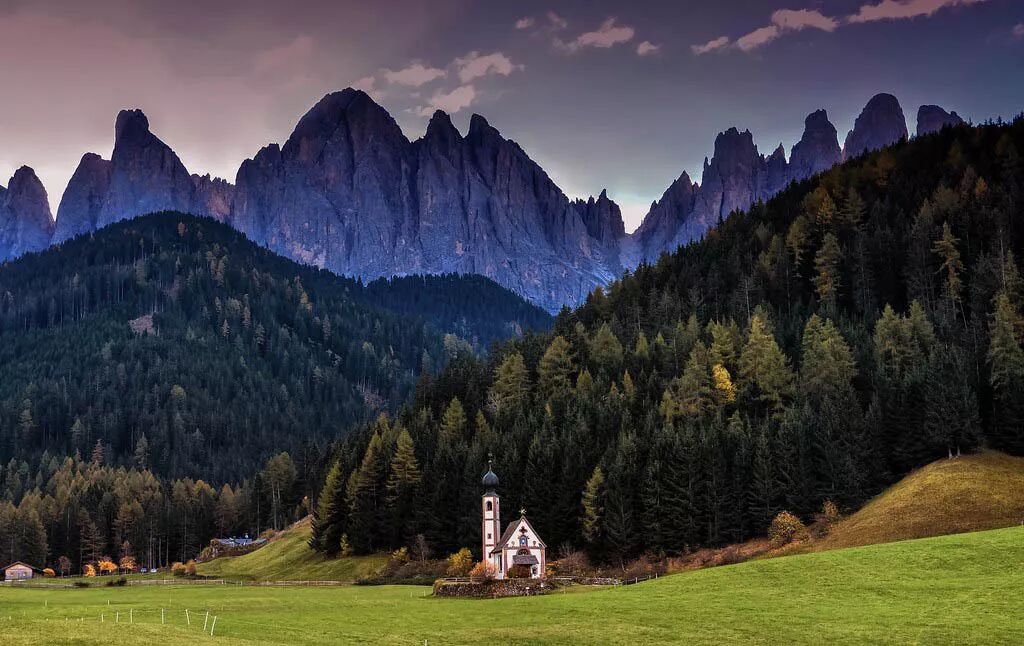 富纳斯山谷,这座位于多洛米蒂深处的小镇被誉为是阿尔卑斯山最美的景色,也是多洛米蒂自然公园的中心地带。青山环绕,森林错落有致,背后耸立着盖斯勒山峰。这座山峰也是被誉为最上镜的山峰,这里传统的山间教堂是最好的名片。山谷中还有一座Puez Odle自然公园。