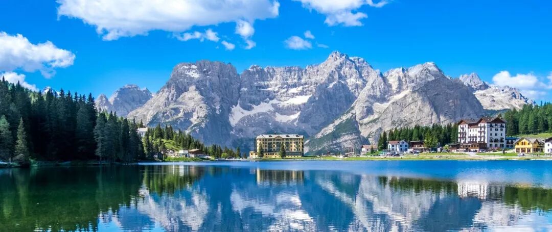 密苏里纳湖(意大利语 Lago di Misurina) 海拔1754米,湖面14公顷,水、雪、林、草、山、楼的搭配组合使这里被评论称为“欧洲最上镜湖泊之一,兼风景摄影中出镜率最高的湖泊之一”。
