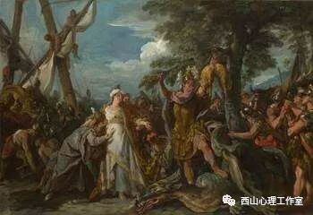 他们碰到的第五件事也是一个危难。在中途休息的时候,赫拉克勒斯去打猎,许拉斯跟他一块,结果许拉斯在幽谷中迷路了。在湖边休息的时候,有一个宁芙从水里边升起来,看到这个俊美的青年就爱上了他。许拉斯和宁芙眼对眼,也被催眠了,看迷糊了。于是,宁芙就把他一把拖进了水里面。那个小伙子就永远地在湖里面陪着这些姑娘们。赫拉克勒斯发现了许拉斯失踪了以后,非常的着急和焦虑,到处寻找,错过了开船的时间。赫拉克勒斯和许拉斯也就从任务里面退出来了。那也就是说,这个巨大的力量退出了,俊美的容貌退出了。这就给美狄亚留出了施展能力的空间。为什么这么说?因为作为力量原型的赫拉克勒斯不难取得金羊毛,但这不是他的事儿。