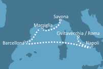 船名 | 歌诗达.赛琳娜号 | 所经国家 | 意大利.法国.西班牙 | 出发日期 | 18.11.2014 | 出发码头 | ROMA | 到达日期 | 23.11.2014 | 到达码头 | SAVONA | 行程天数 | 6天5夜 | 舱位等级 | 内舱房 | 价格: