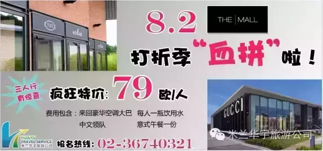 旅游部电话:02-36740321,377-8836045 微信:HUAYUTOUR QQ:1656778368 机票部电话:02-36740320,324-0948788 微信:MILANOHUAYU QQ:2878538503 微信公共订阅号:HUAYUMILANO