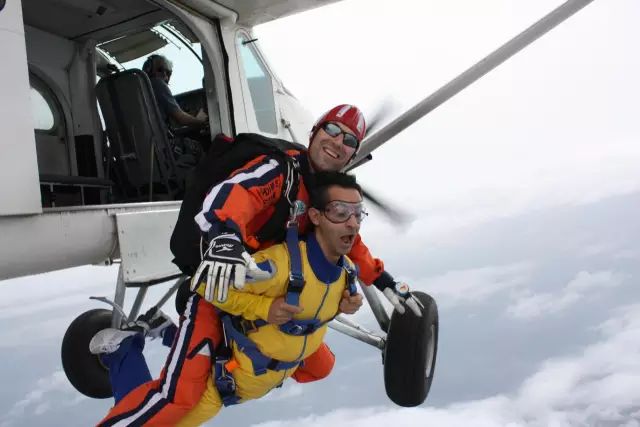 双人跳伞,就是由一名经过专业培训并取得国际双人伞带跳资格证书的双人跳伞教练,把游客利用背带系统和自己固定在一起。游客在接受简单培训后,和教练一起从4200米左右的高空跳下飞机。在双人伞带跳教练的帮助下,游客无需自己负责打开降落伞,就可以感受到自由跳伞所特有的激动人心。那里有一个跳伞专用的机场,距离城市中心大约五公里。其实跳伞的准备工作并没有你想象得那么复杂,马上我们就看看具体怎么操作: